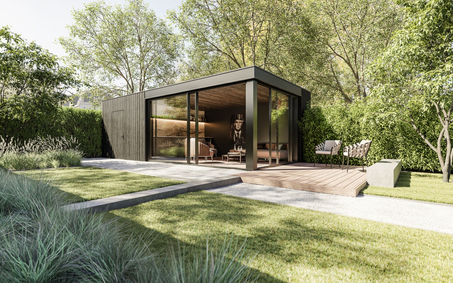 Innerlijke rust. Balans tussen inspannen en ontspannen. Harmonie. Ze worden weerspiegeld in het minimalistische design van de Luvinate. Het is juist dit minimalisme waardoor de Luvinate in elke omgeving past, van landschappelijke tuin tot compacte stadstuin. Dankzij de hoogwaardige afwerking (en inrichting naar keuze) wordt de Luvinate je ultieme verblijfplaats voor de vrije momenten. In elk seizoen.